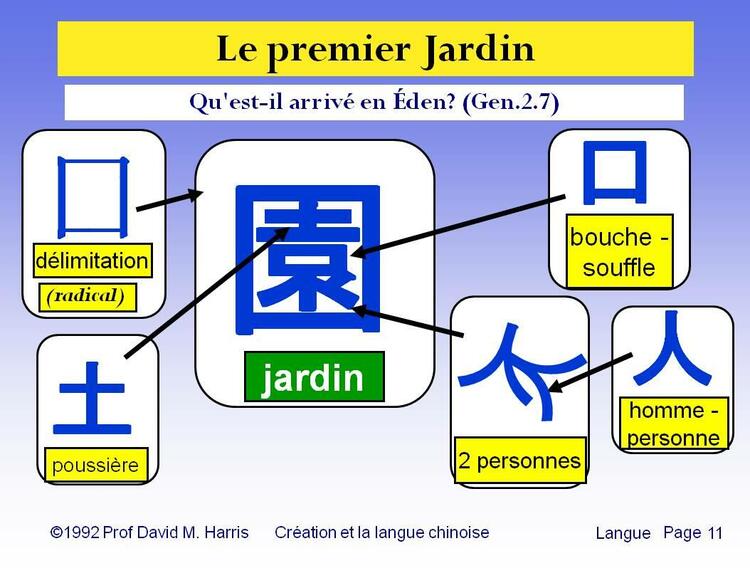 Création et la  langue chinoise - Tiré de «La Découverte de la Genèse» de Kang et Nelson